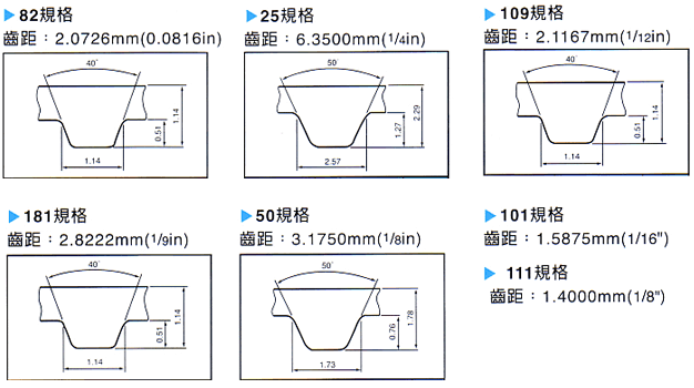 鋼絲齒型皮帶OD尺寸表